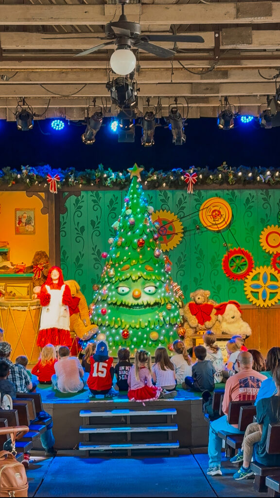 Silver Dollar City’s live shows are always incredible, but their Christmas productions take things to another level. The Living Nativity tells the story of the first Christmas with beautiful music and costumes, while the park’s version of A Christmas Carol is a heartfelt Broadway-style show with top-notch acting and special effects. We really loved Tinker Junior’s Toy Shop and The Frontier Fa La La Follies- both were short and silly; perfect for younger kids.
