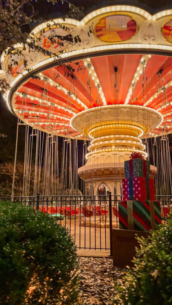 If you have younger kids, head to Fireman’s Landing or The Grand Exposition; both are filled with family-friendly rides and lots of Christmas cheer.