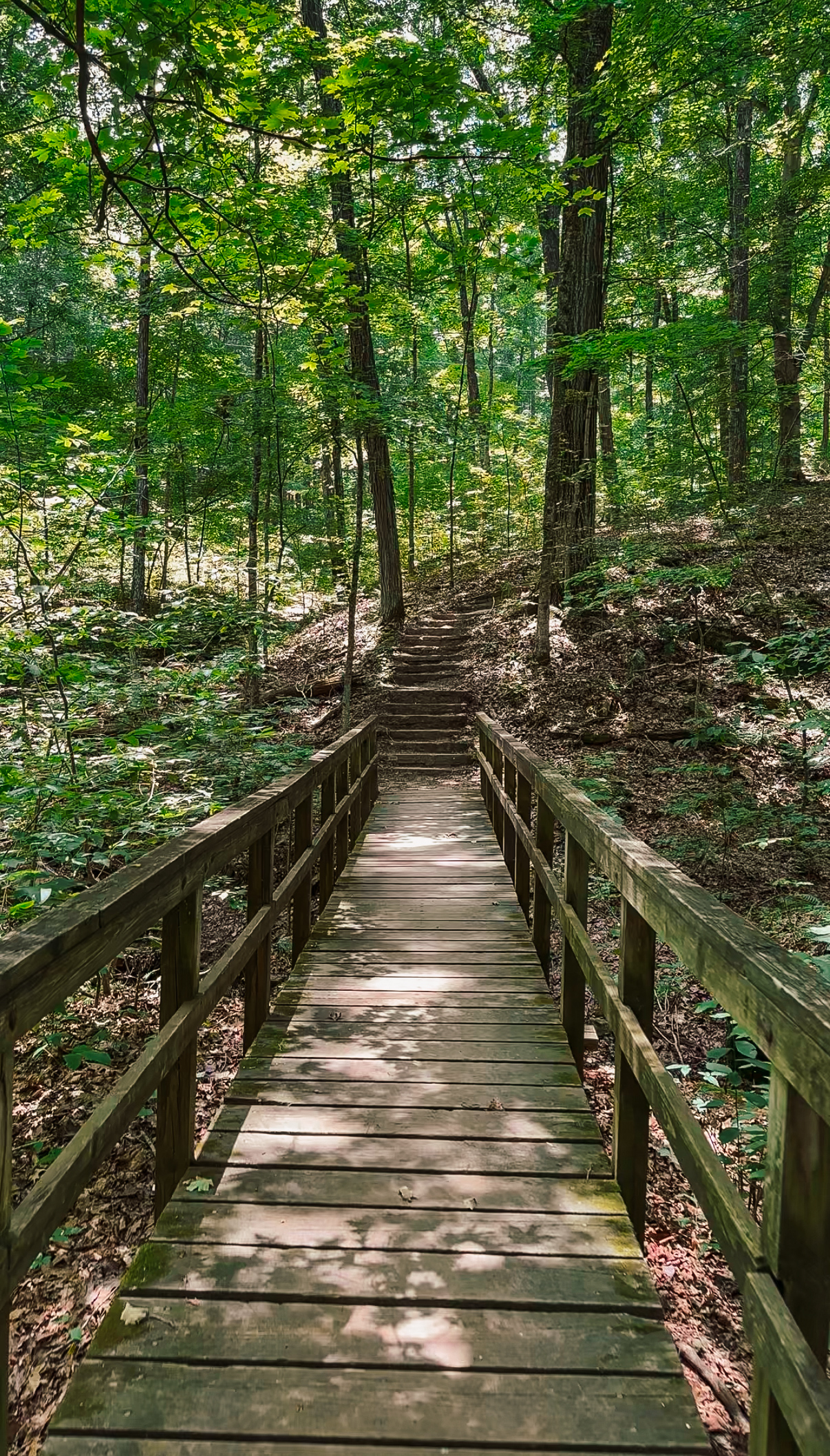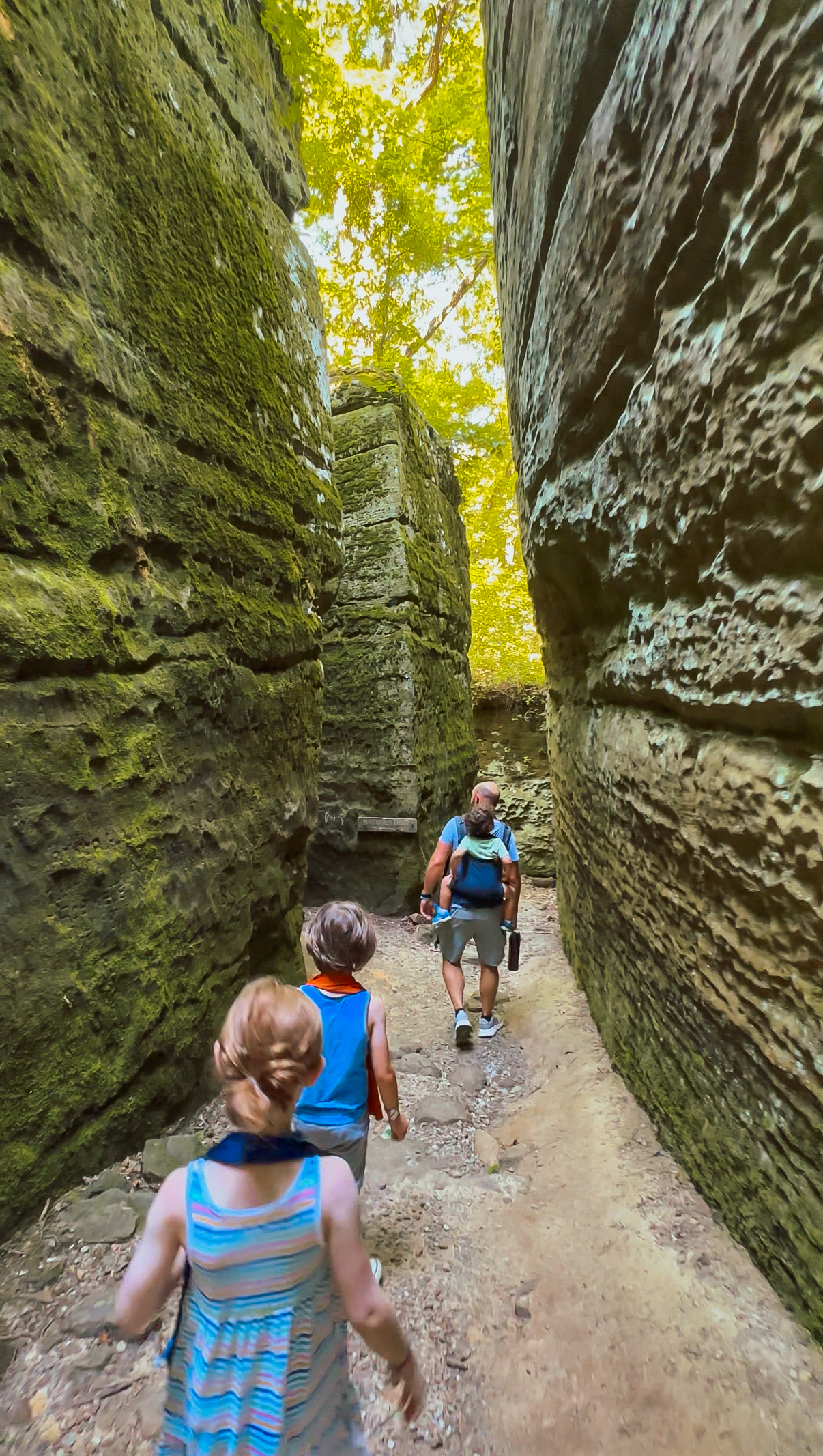 Next, drive to Giant City, famous for its sandstone passageways that feel like nature’s playground. The 1-mile Nature Trail winds through narrow tunnels, crevices, and mazes and is incredible- definitely one of the coolest trails in the Midwest.