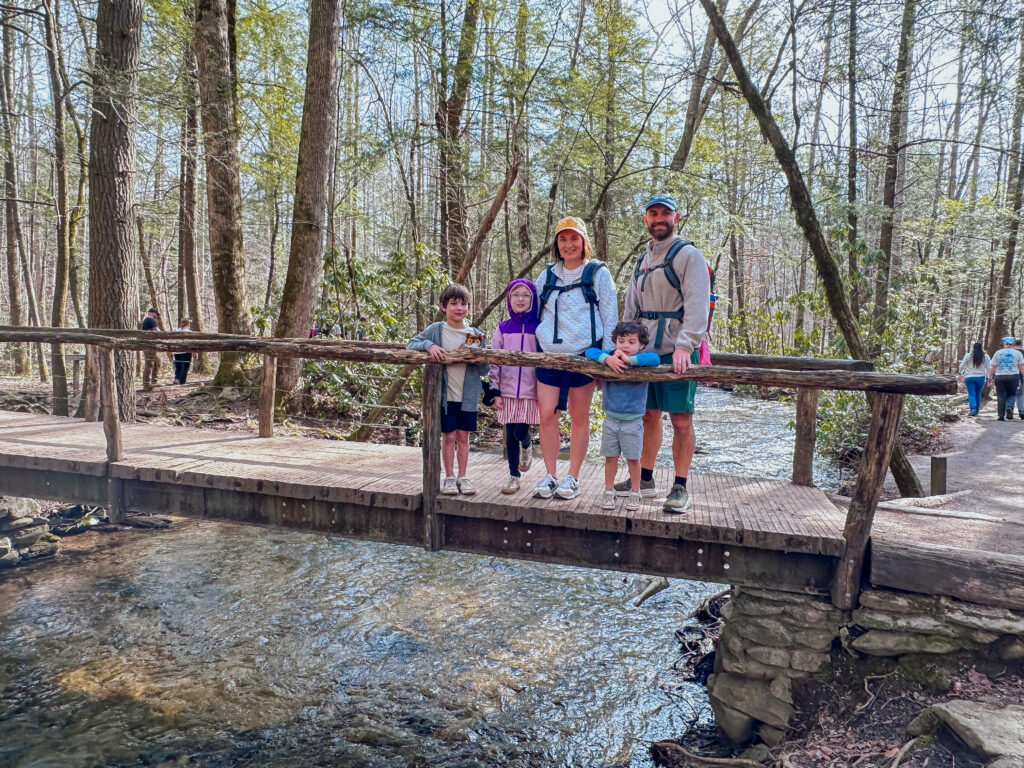 On your way back from Mingo Falls, stop at Alum Cave Bluffs Trail for an afternoon hike. This trail winds through old-growth forest, past streams and natural arches, ending at a towering bluff that feels like a secret hideaway, and is such a fun spot for kids to play and explore. We especially loved all the bridges and water crossings.